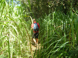 When everyone had their fill of swimming, we started our hike back to the kayaks. This time we hiked up the Valley, through the relics of the old hawaiian village and taro fields. The hike was muddy, and our water shoes offered little traction, so we were slipping and sliding our way down the trail.